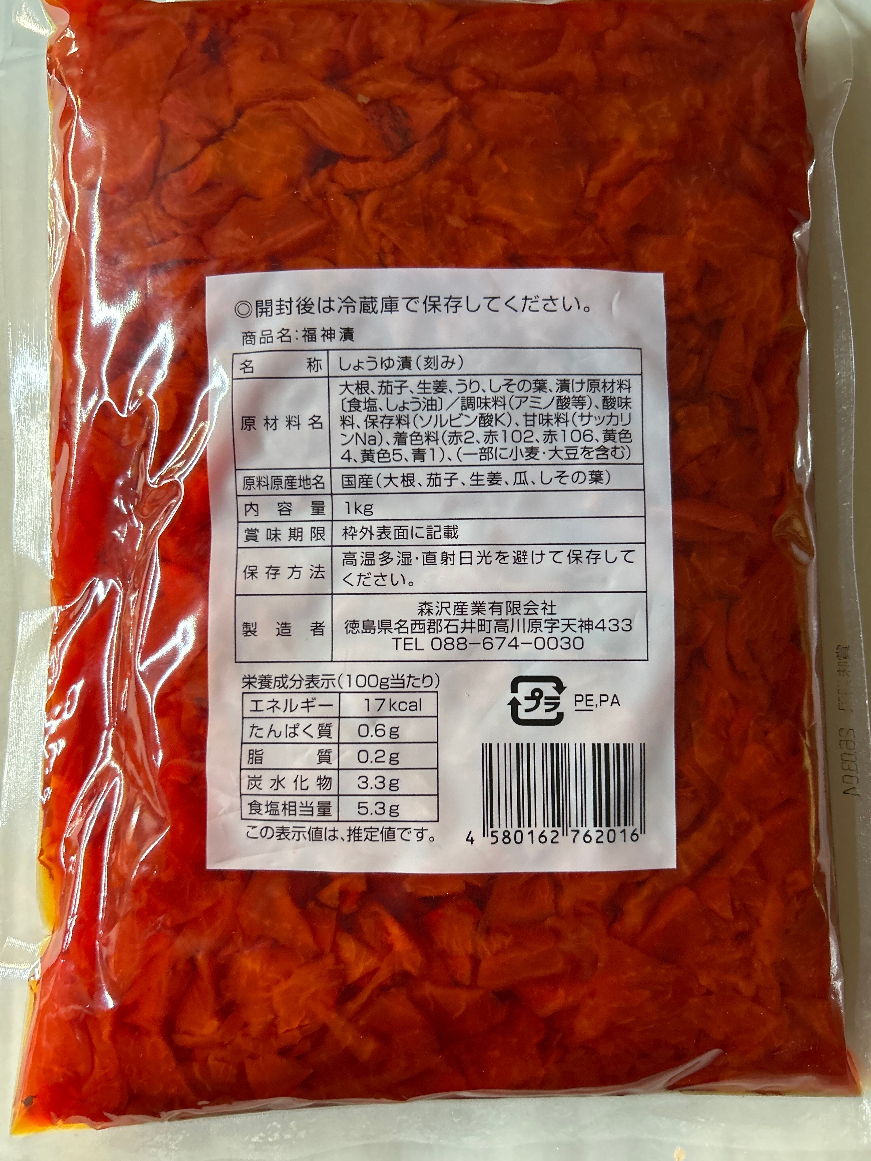 1kgの大容量で、ご家庭でのストックにも最適です。パーティーや集まりにも便利にお使いいただけます。福神漬の程よい甘みと酸味が絡まり、料理に彩りを添え、食欲をそそる逸品をお楽しみください。